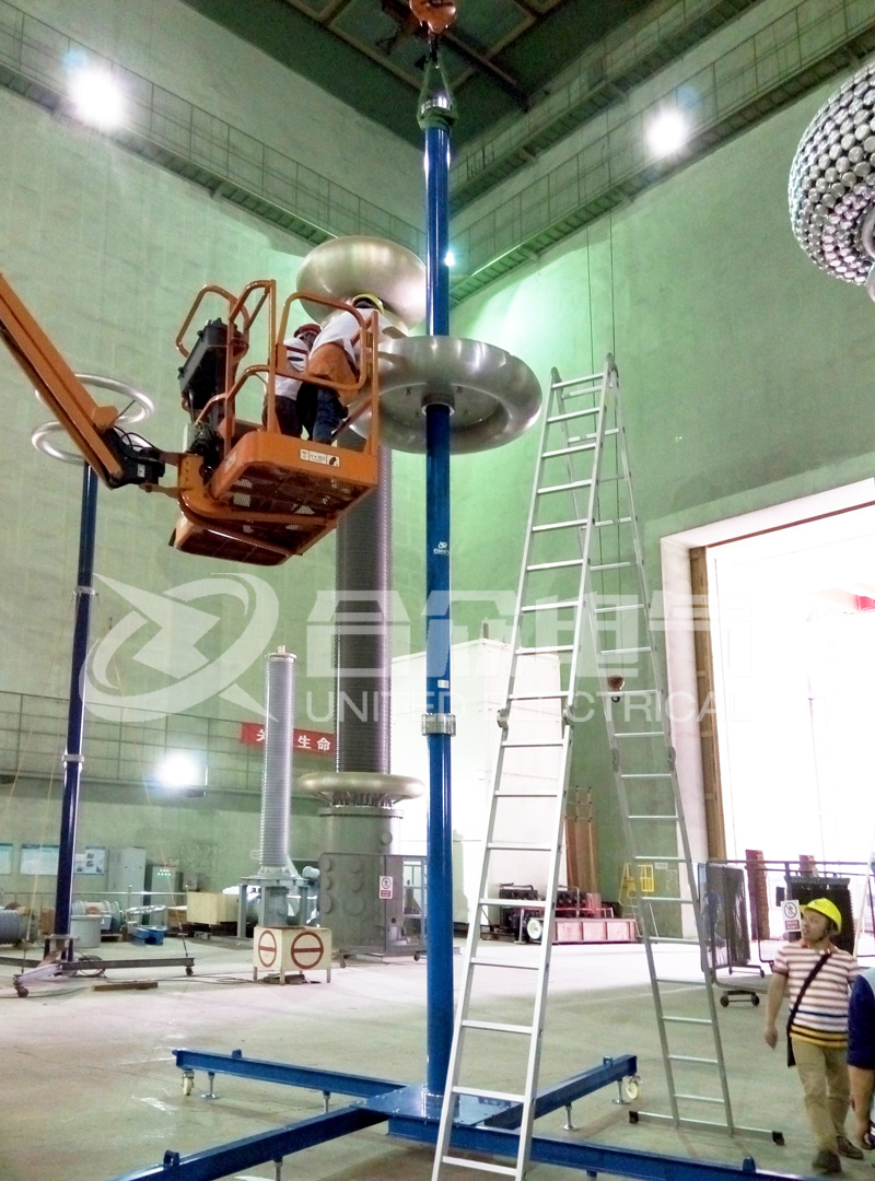 在現(xiàn)場,武漢合眾電氣的技術(shù)人員開始對這臺電容分壓器進(jìn)行組裝。由于這臺分壓器的高壓電壓達(dá)1200KV,所以整套設(shè)備非常巨大。