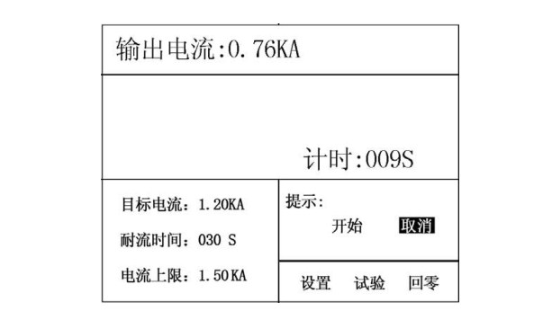 結果顯示區:用來顯示試驗結果數據,顯示計時時針、平均輸出電流或最大輸出電流、耐流時間或沖擊時間等。
